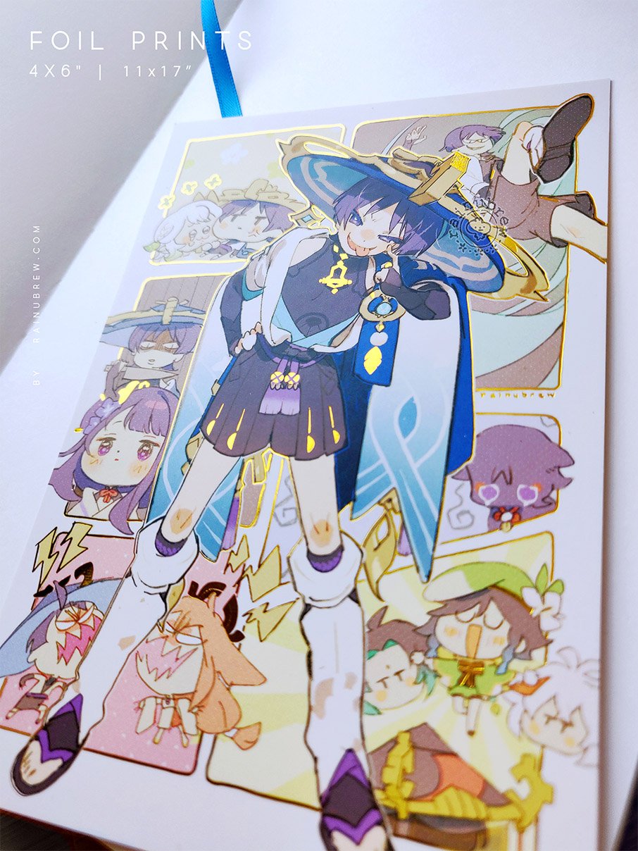4"x6" and 11"x17" print + foil featuring the brat from Genshin Impact